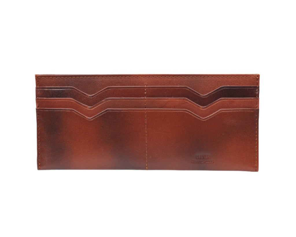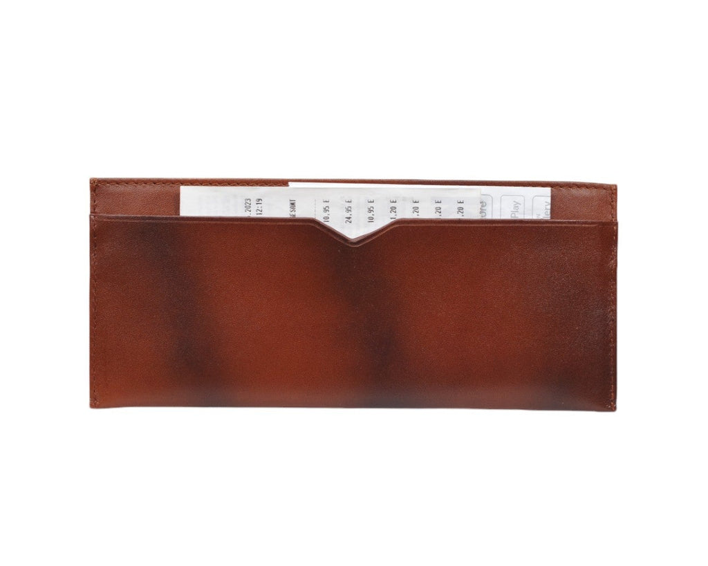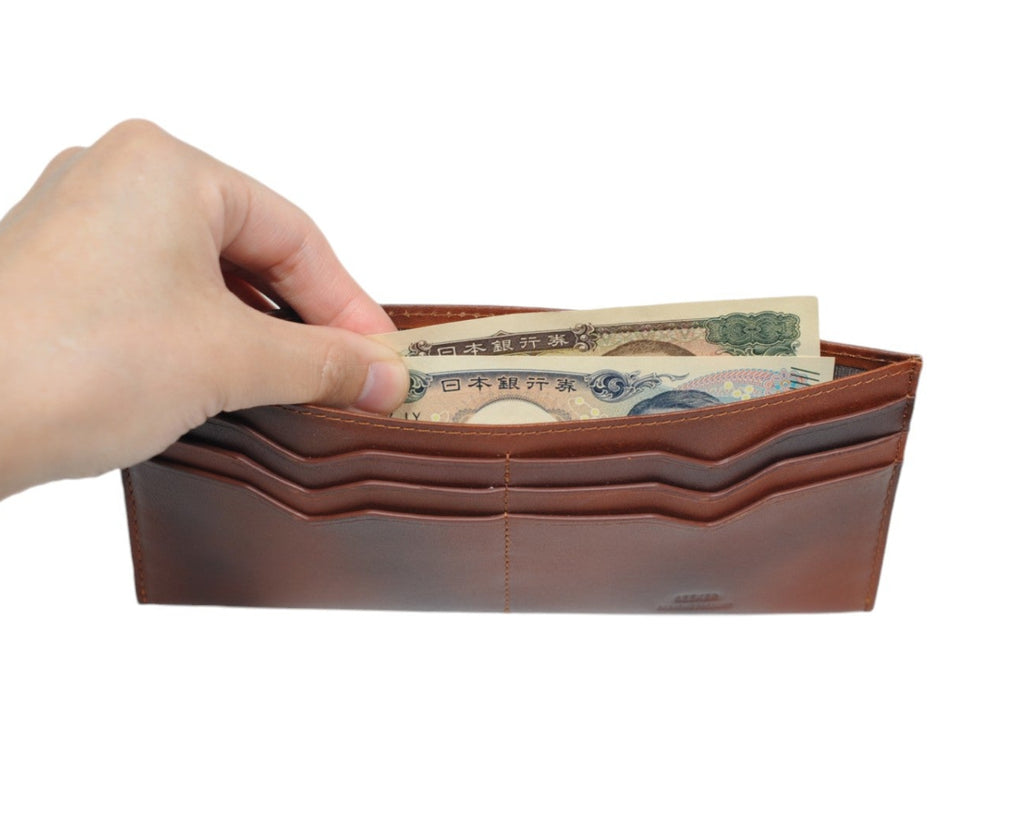 手染めにより仕上げられた程よいムラ感と重厚感のある佇まいを最大限に生かし、流行に囚われないスマートなデザインに仕上げました。経年変化と共により深みのある色味に仕上がり、長くお使い頂ける逸品です。